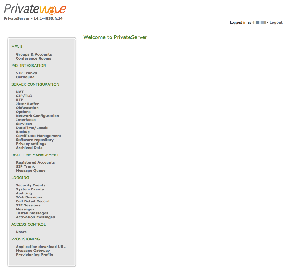 This is enough self-explaining. On the upper left side of the home page you can watch the company logo and just below the PrivateServer version, which in fig. 1 happens to be 2.0-2792.fc14