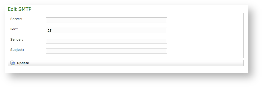 Once you inserted all the data in the proper field, just press "Update" button at the bottom of the form as shown in figure 4. Configuration panel for generic SMTP.