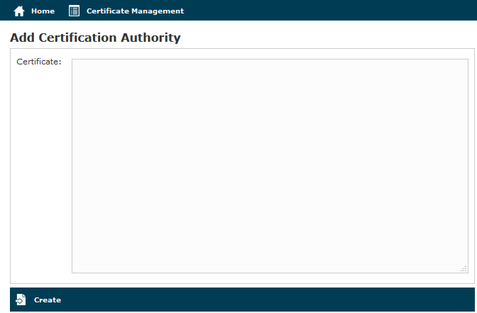 You get the form shown in figure 13. New Certification Authority which is pretty straightforward. You just have to cut 'n' paste the CA's content in the Certificate box and click on the Create button at the bottom.