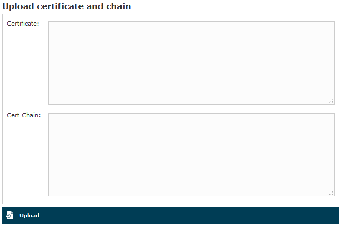 You can fill Certificate text box with actual Certificate as it has been release from Certificate Authority. If you got also some intermediate Certificate, then you have to paste it in Cert Chain.