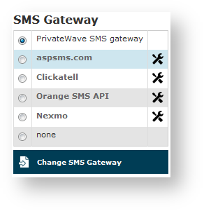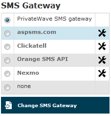 PrivateServer supports many different SMS gateway to send installation and activation messages via SMS. In order to use Automatic Activation you need to subscribe one of these services, get your credentials and then configure it in PrivateServer .