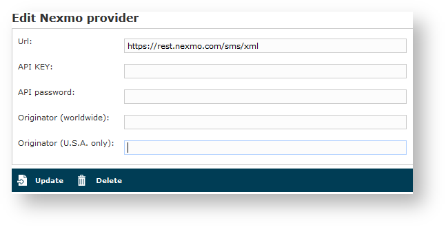 Nexmo is our privileged provider for delivering Text messages in the United States. That's the reason why in its configuration form you can read a double entry on the "originator":