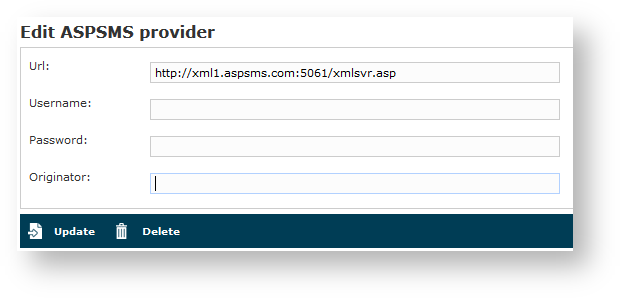 Choose from Client Provisioning, Message Gateway and edit ASPSMS.COM sms gateway.
