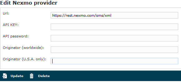 Nexmo is our privileged provider for delivering Text messages in the United States. That's the reason why in its configuration form you can read a double entry on the "originator":