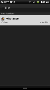 Open the top notification area and check that the PrivateGSM notification says "Online" (Fig. 1). If not, PrivateGSM is not connected to Sip server.