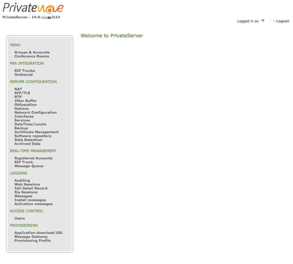 This is enough self-explaining. On the upper left side of the home page you can watch the company logo and just below the PrivateServer version, which in fig. 1 happens to be 2.0-2792.fc14