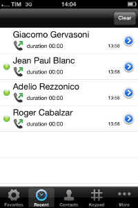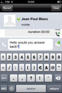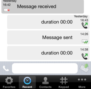 Every event performed or received on your PrivateGSM is listed into the "History" tab, which can be displayed by pressing "Recent" icon on the tab bar.