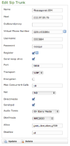 Click on the New Sip Trunk to go to the Edit Sip Trunk page.