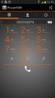 - make secure calls to phone numbers and contacts using the PrivateGSM +801 prefix (not available on iOS). In this case, you do not need to manually open the main menu of PrivateGSM if the application is in background.