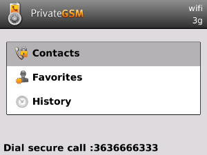 - make secure calls to phone numbers and contacts without entering the PrivateGSM prefix directly from menu of the application.