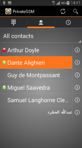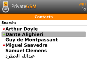 You can make secure calls from PrivateWave by simply selecting a contact in any contact list.