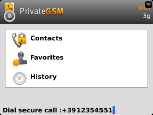 You can make a secure call from the PrivateWave menu by simply dialling the number complete with international country code (i.e.: +44 for UK) and pressing the dial button.