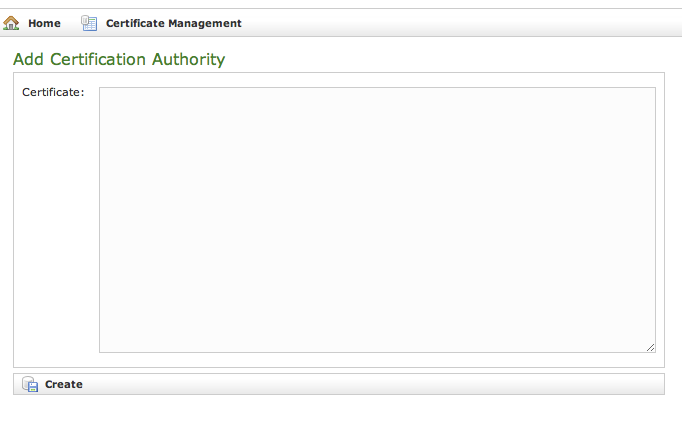 You get the form shown in figure 13. New Certification Authority which is pretty straightforward. You just have to cut 'n' paste the CA's content in the Certificate box and click on the Create button at the bottom.