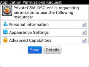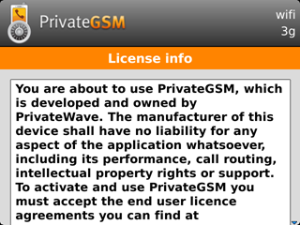 On BlackBerry platform you download the application and accept Application Permission Request.  PrivateWave  will start with the License Info screen. After Activation is performed, you find  PrivateWave  icon in the BlackBerry applications list.