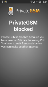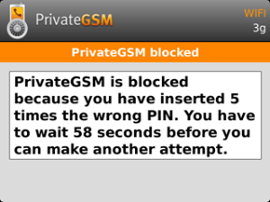 By default you'd asked to insert PIN if you didn't use the client for 10 minutes. You have 5 attempts to insert your correct PIN number. If you failed all of them your  PrivateWave  would be blocked for one minute, in order to prevent malicious unlock attempts.