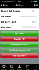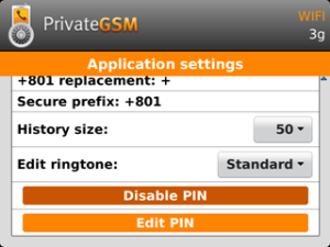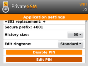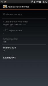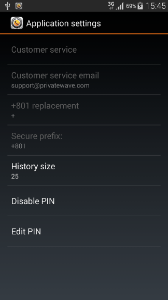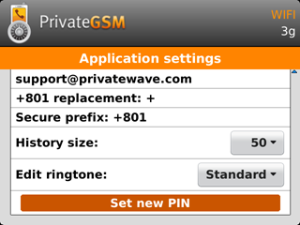 It's possible to protect access to  PrivateWave  by setting a 4 digit long PIN number. PIN number protect any access to your client (and thus to your communication data) except when answering to a Secure Call