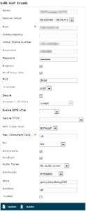 In figure 1. "Edit Sip Trunk" form you can read an example configuration for an unencrypted SIP trunk. Mandatory fields for the unencrypted configuration are: