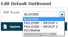 To choose the default Trunk you just need to click on the "BLOCKED" tag and then you can use the drop down menu as in figure 2. choose the default outbound trunk.