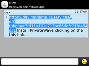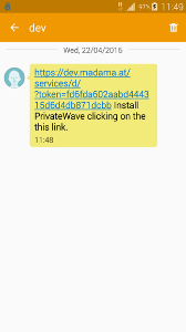 PrivateWave for Android install procedure follow the standard Android procedure. Simply click on the SMS and download PrivateWave through Google Play