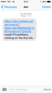 PrivateWave for iPhone install procedure is the standard iPhone procedure. Simply click on the SMS and download PrivateWave through iTunes