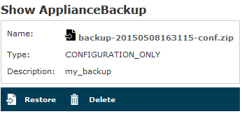From the Show ApplianceBackup you can decide if Delete or Restore the archive. Let's go for restoring it.