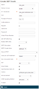 In figure 1. "Edit Sip Trunk" form you can see an example configuration for creating a SECURE SIP Trunk. The mandatory values are: