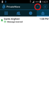 - If you want to start a new chat by Secure Messages, then just tap + icon highlighted on the top right side of PrivateWave . Contact list will pop-up, tap on contact to whom you want to send Secure Message and composer will popup (as in figure 11. Android Composer) and now you are ready to write your secure message.