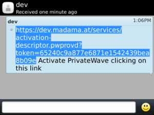 This link can be delivered by any means, but it has to be used directly on user's device where previously PrivateWave have been installed.