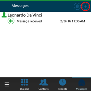 - If you want to start a new chat by Secure Messages, then just click on + button highlighted as in figure 10. blackberry message history. Contact list will pop-up, tap on contact to whom you want to send Secure Message and composer will popup (as in figure 11. blackberry Composer) and now you are ready to write your secure message..