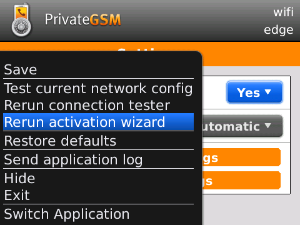 Open the settings screen from the application menu (Fig. 1). Open the menu and select "Rerun activation wizard" (Fig. 2). PrivateWave will restart and after the reboot activation wizard will start (Fig. 3)