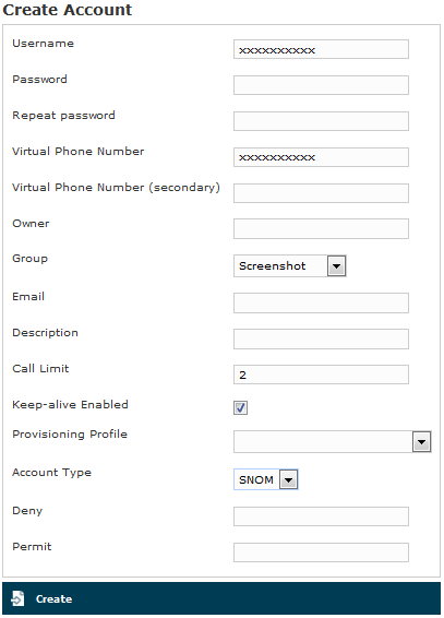 Set a Virtual Phone number as a numeric value of your choice. Please consider that the Virtual Phone Number is the number to be dialed to call the Account (and also the number shown as the caller, when the Account dials a call). We suggest a three character number such as "111" or "123" for SNOM devices and actual mobile phone number for PrivateWave accounts.