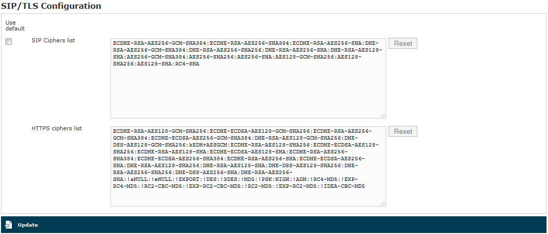 - From SIP/TLS it's is possible to set up the cipher list for https protocol.