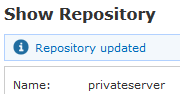 You are going to read the "Show repository" form (as in figure 2. Configuration of the single repository) with a message informing you that the update has been performed (please refer to figure 7. Your repository has been updated!)