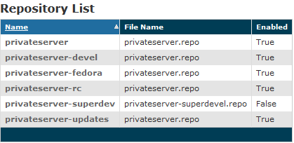 Please consider that a value of "False" in the "Enabled" column means that the involved repository won't be used to check for updates and to build the dependency tree!