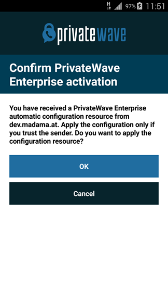 PrivateWave can be automatically activated by Service Operator/Administrator by just delivering a configuration link.