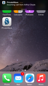 PrivateWave has to be running and your devices has to be connected to the Internet to receive a secure call. When an incoming secure call arrives to the device a notification will be shown on display. If you accept the notification PrivateWave will be brought on foreground and in a few seconds, depending on type of network and security level, it will be possible to start speaking securely.