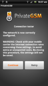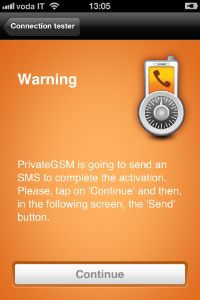 In order to activate Automatic mode PrivateGSM sends an SMS to a PrivateWave UK's number, so be sure that your SIM is enabled to send international SMS. Since this feature is subject to additional costs related to sending an SMS, PrivateGSM asks to the user to confirm the action before proceeding with it.