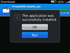 On BlackBerry platform before installing the actual PrivateGSM application you should download and install an "installer" application that checks if you device is supported or if it could be supported after an OS upgrade (eg: Bold 9000 or Curve 8520 has by default an operative system version of 4.6.x which is not supported, but if you upgrade the OS through Desktop Manager to OS 5.x, PrivateGSM will work on these devices).