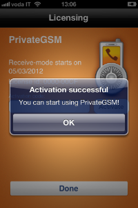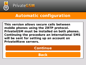 In order to activate Automatic mode PrivateGSM sends an SMS to a PrivateWave UK's number, so be sure that your SIM is enabled to send international SMS. Since this feature is subject to additional costs related to sending an SMS, PrivateGSM asks to the user to confirm the action before proceeding with it.