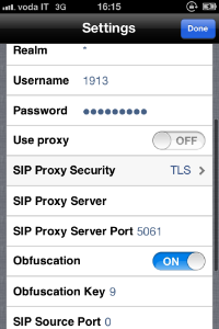 The Obfuscation switch status and the Obfuscation key value must reflect the account configuration into the server; you have to obtain this information from your system administrator (or your provider). By default, the obfuscation is enabled and the standard key is 9