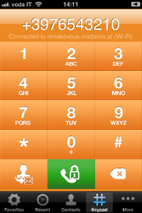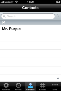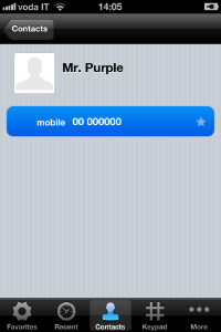 Calling with PrivateGSM is very easy. Select Contacts tab from the tab bar, tap on the contact you want to call and select the contact number associated with PrivateGSM.
