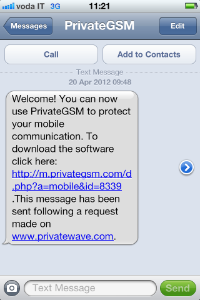 PrivateGSM for iPhone install procedure is the standard iPhone procedure. Simply click on the SMS and download PrivateGSM through iTunes