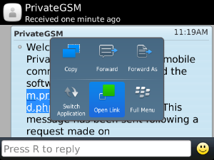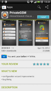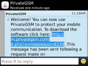 PrivateGSM for Android install procedure follow the standard Android procedure. Simply click on the SMS and download PrivateGSM through Google Play