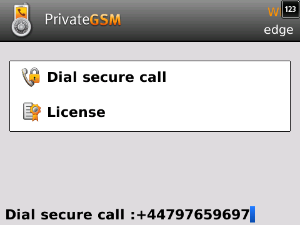 You can make a secure call from the PrivateGSM menu by simply entering the number complete with international country code (i.e.: +44 for UK) and pressing the dial button.
