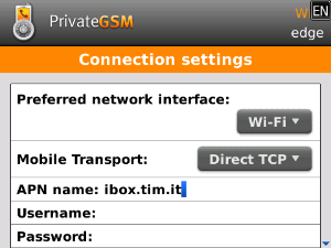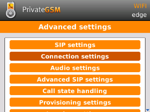 To change the Access Point, select Settings > Advanced Settings > Connection Settings from the PrivateGSM menu. Restart the application for the change to take effect. PrivateGSM automatically reconnects after the change.