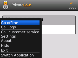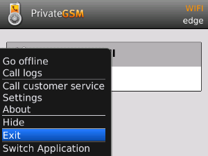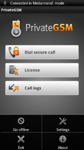 To re-launch the application, open the phone menu and select PrivateGSM. The connection is automatically re-started.