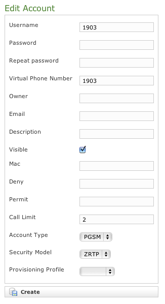 Compile all necessary fields of the new account, select a Provisioning Profile and click on "Create". Now jump to paragraph 1.0.3.6 for activate the user.