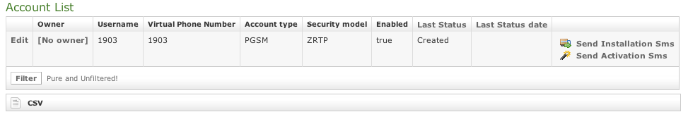 Once you have almost one group you can fulfill it with SIP Accounts. In the Group List (figure 3. The group has been created successfully) click on the Accounts icon on the right of each group's row.