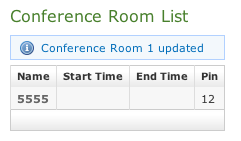 You'll be redirected back on the "Conference Room List" page, whom table will show the new room you've just created.