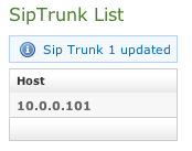 To check the entered data of the SIP Trunk click on the "Host" value into the table (for example in this case you should click on "10.0.0.101"). This will open again the Edit Sip Trunk page with the previously entered data.